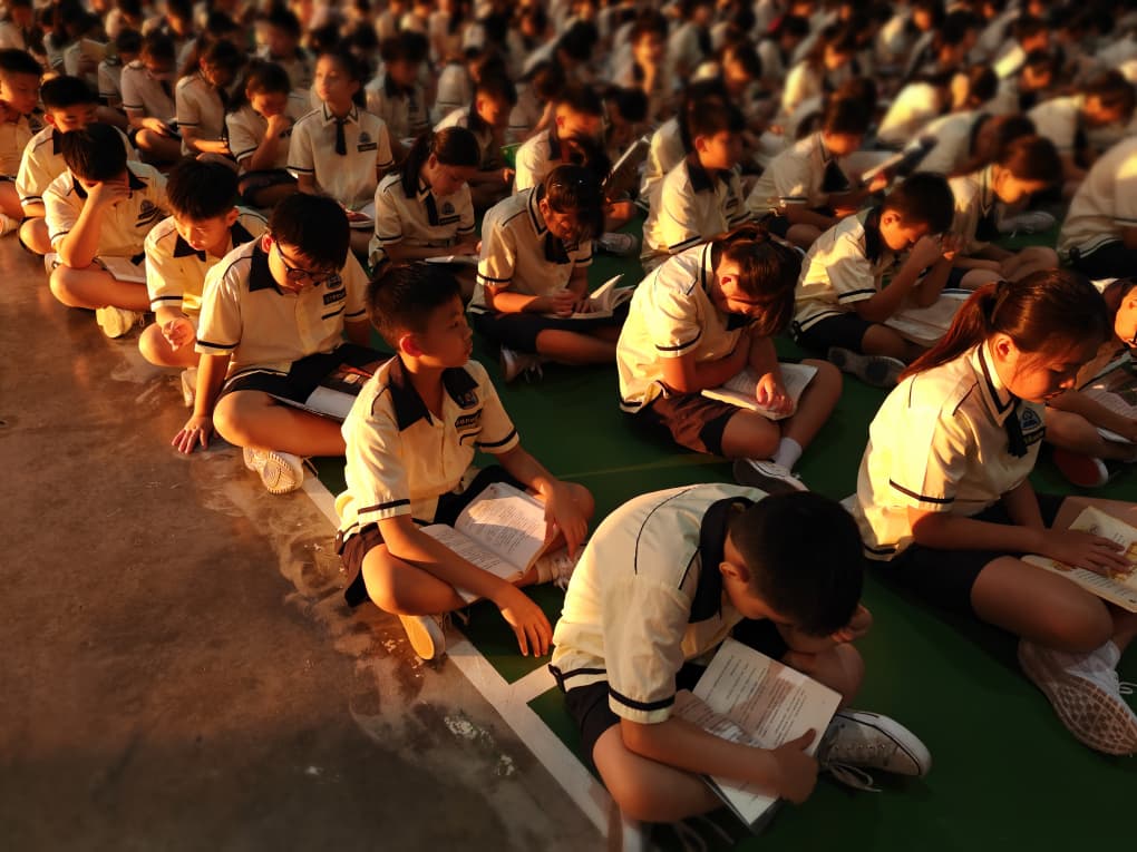 2026年7月9日(星期一),波德申中华中学全体师生齐聚学校大礼堂进行周会。在周会开始前,全校师生一同投入宁静阅读时光,礼堂内书香弥漫,师生沉浸在专注而安定的阅读氛围中,为新一周注入沉稳而积极的能量。