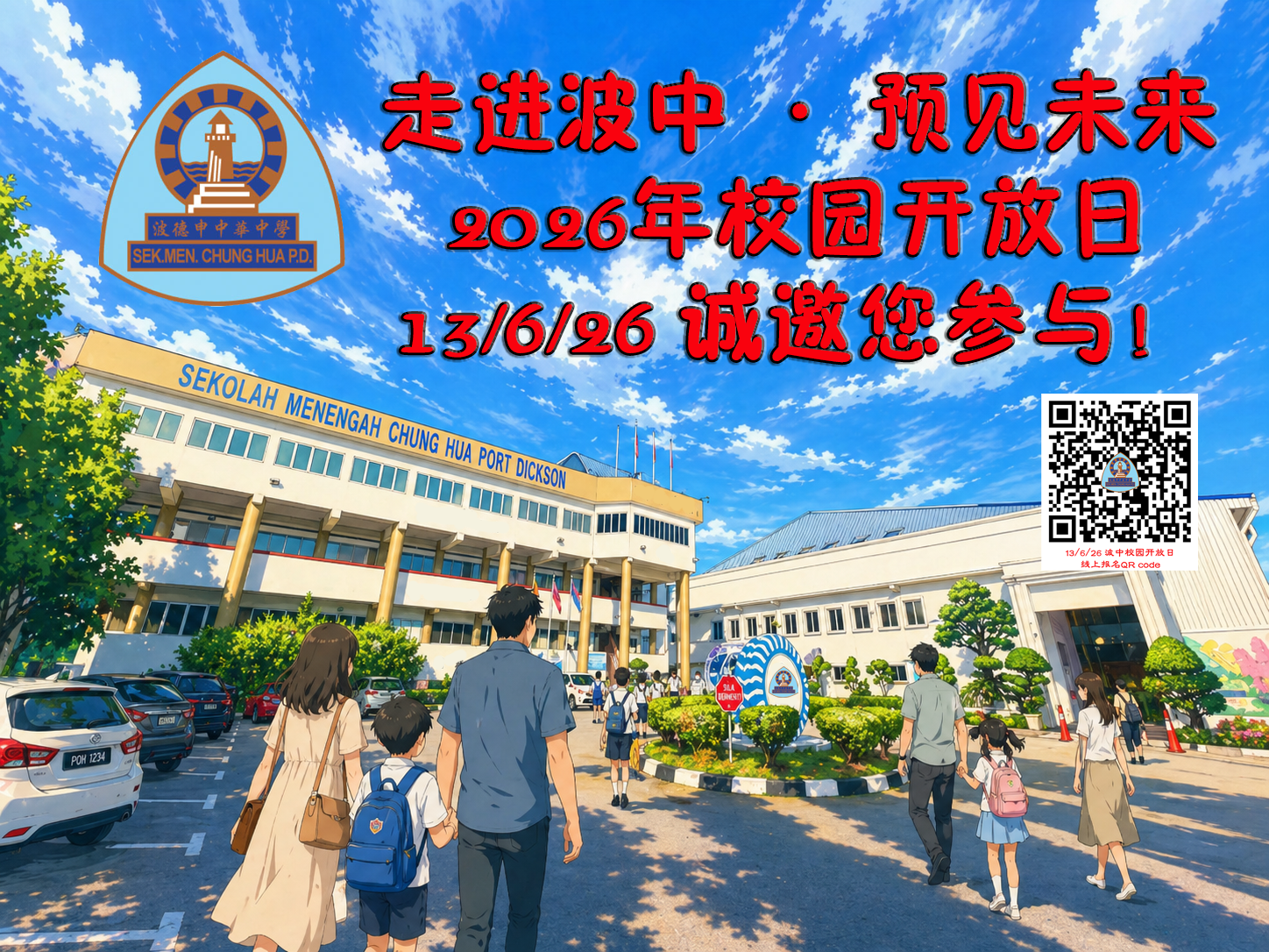 (波中 讯)为让更多家长与学生深入了解学校的办学理念与学习环境,波德申中华中学将于2026年6月13日(星期六)上午9时至下午1时举办一年一度的校园开放日。本校诚挚邀请2026年小学六年级学生及家长踊跃参与,共同走进校园,亲身体验多元学习氛围,开启升学规划的重要一步。