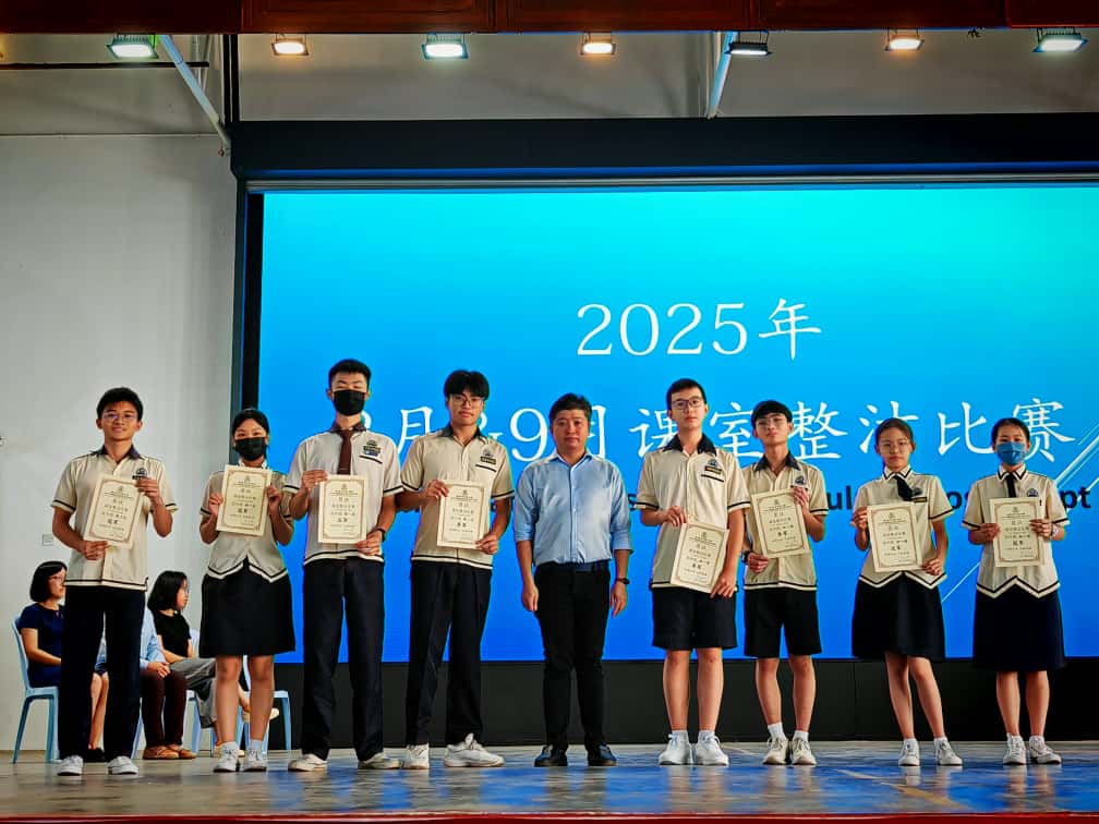 晨读结束后,周会正式开始。学校颁发多项奖项,包括全年班级校内比赛积分奖、校内各语文作文比赛、美术比赛、课室整洁比赛,以及在各项校外比赛中表现优异的学生。无论是文字的巧思、画笔的灵动,或是日常纪律的坚持,每一份成绩都凝聚着同学们的努力与老师们的悉心指导。学校特别恭贺所有得奖学生与班级,赞扬他们展现了波中学子“勤奋、进取、笃实、卓越”的精神。