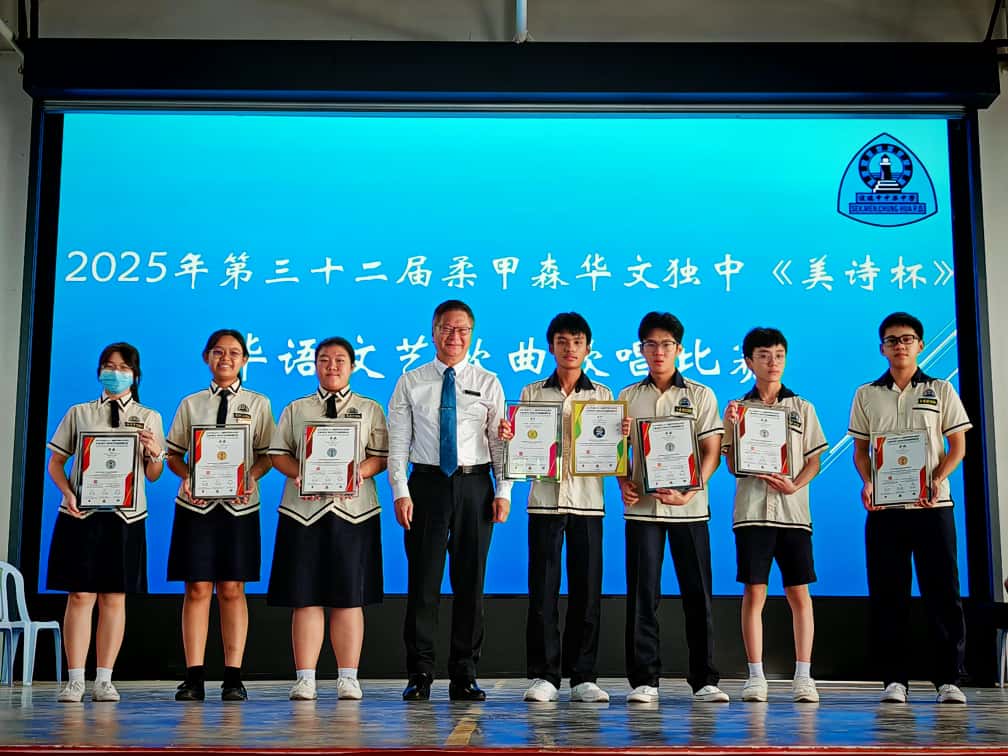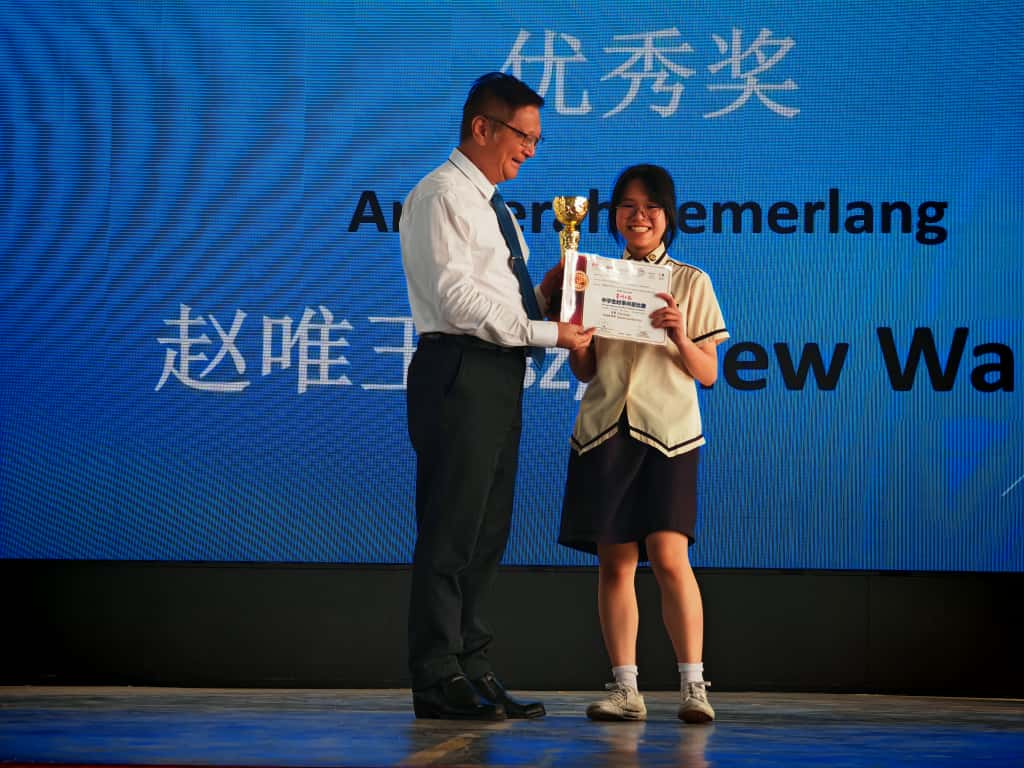 值得一提的是,本校初三智班的赵唯玉同学于本年度荣获《星洲日报》中学生时事问答比赛优秀奖,也在周会上发表感言。她在致词中提到:“资讯和知识并不是加分项,而是生活的必需品。唯有保持关注,才能在变动的时代里站稳脚步,理解世界的呼吸。” 她以真挚的话语鼓励全体同学保持学习热忱,以文字与思考点亮前路,成为自己人生的灯塔。