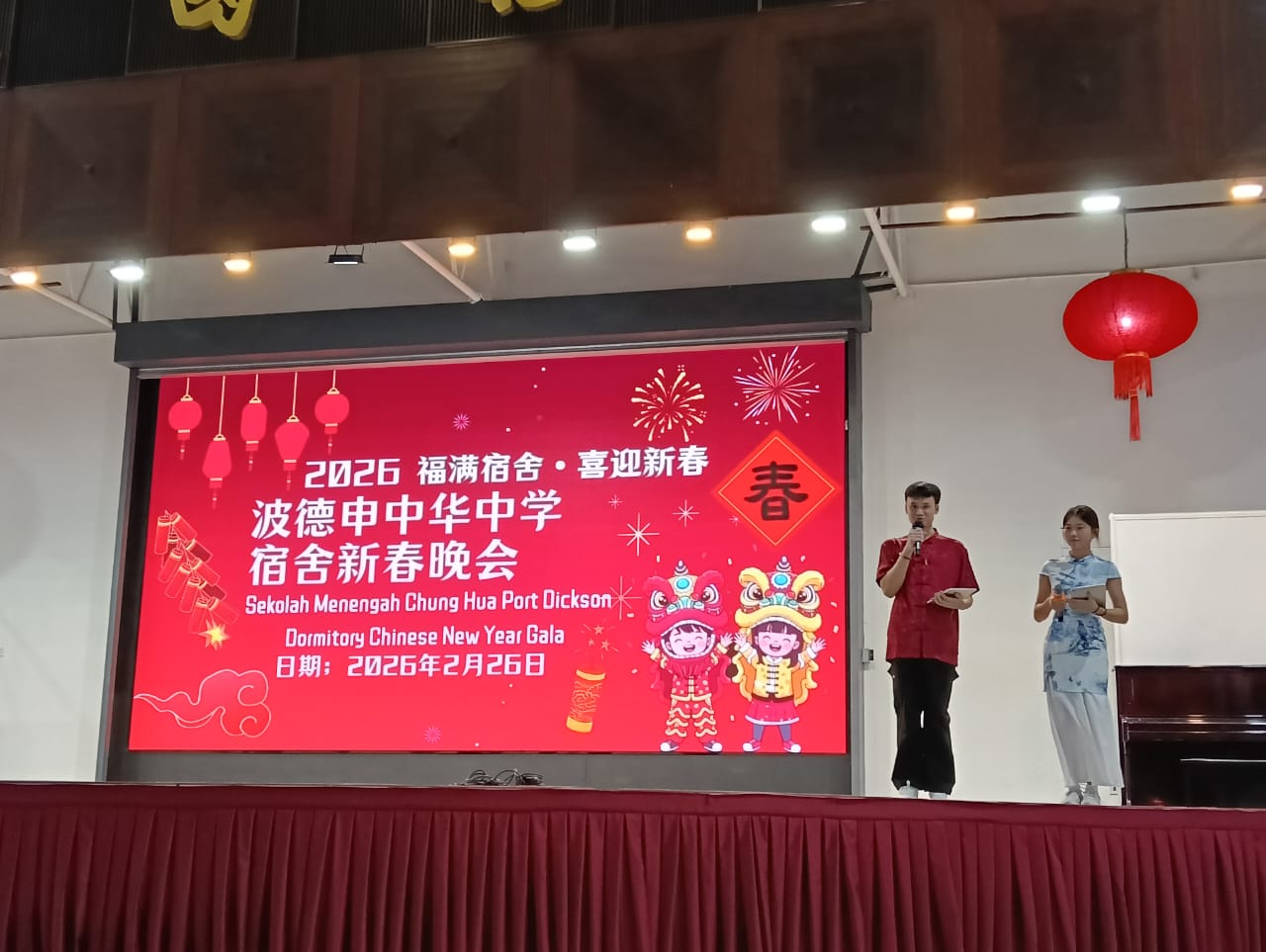 2026年2月26日晚上7时,波德申中华中学宿舍迎来一年一度的新春活动——《福满宿舍 • 喜迎新春》宿舍新春晚会。本次活动由宿舍自治委员会精心筹划,在温馨而喜庆的氛围中展开,展现宿舍生多才多艺的一面,也体现了宿舍不仅是生活空间,更是学习成长与情谊凝聚的重要平台。